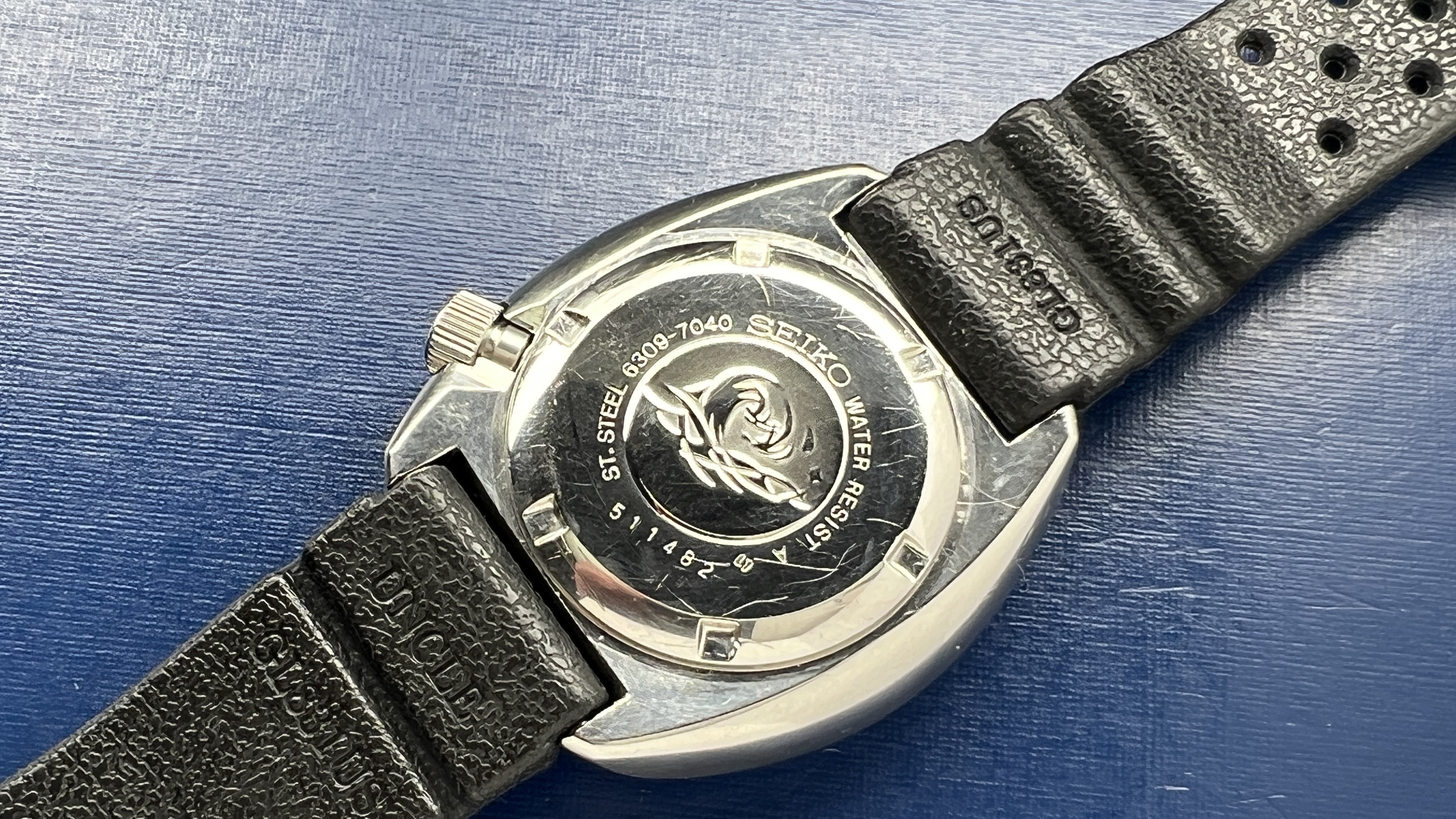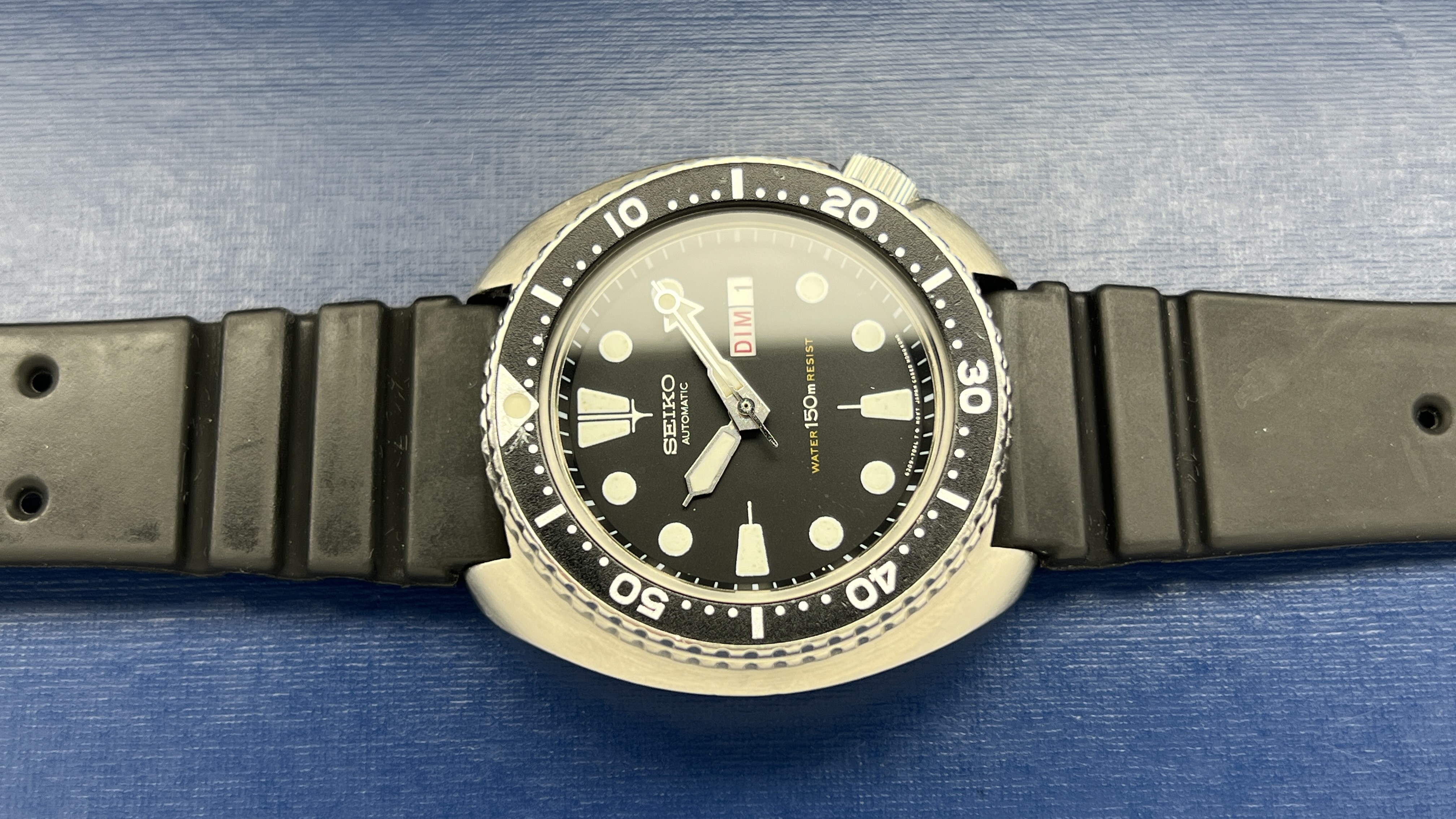 For your consideration is a January 1985 6309-7040. The iconic Seiko diver’s watch. Case, dial, hands, chapter ring, and bezel and strap are completely original to the watch. Crystal is from Klein and band is from Uncle Straps.