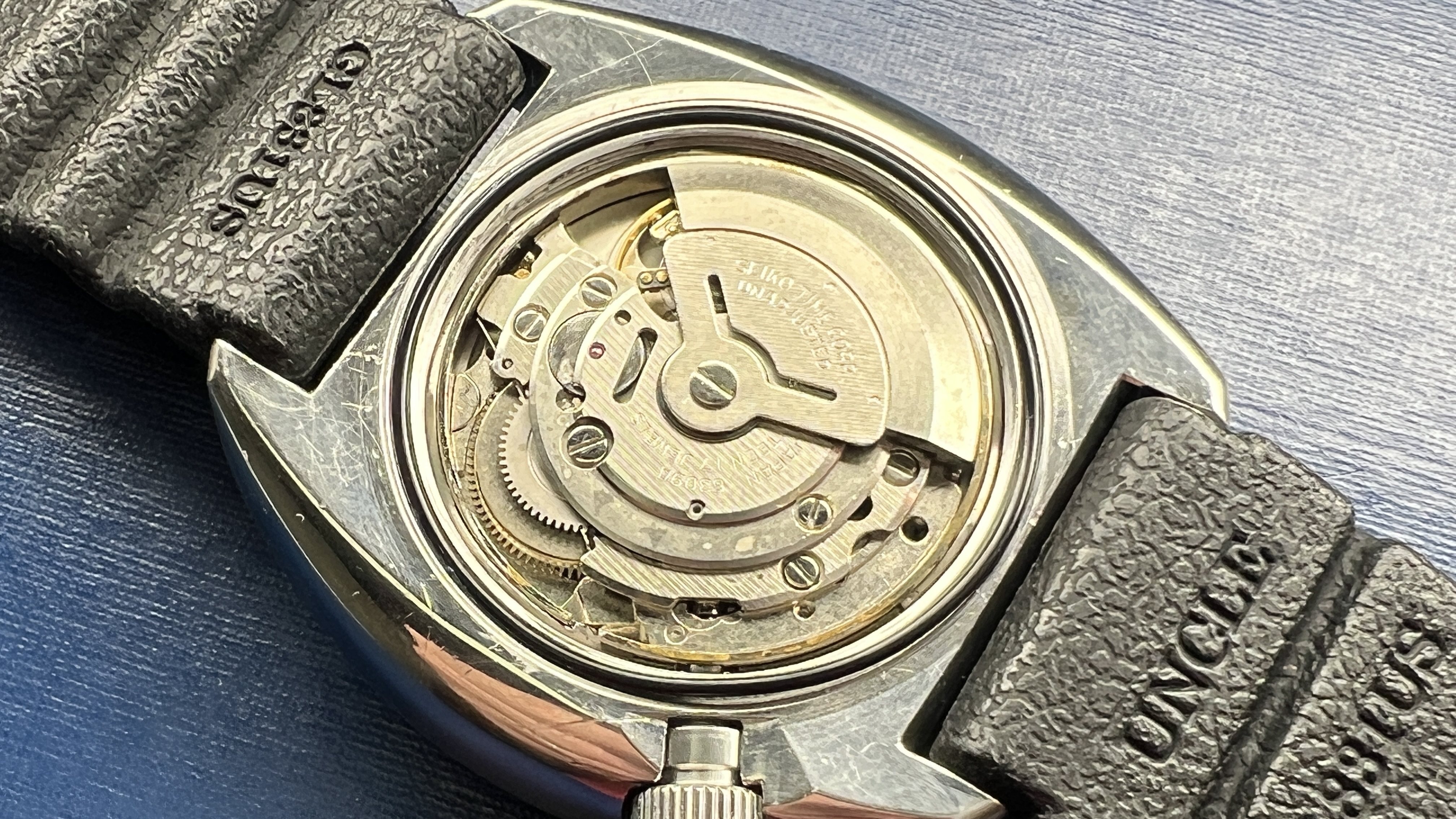 The watch is completely original unto itself and is in very good condition for its age. The case has all of the original surface brushing on the upper surface and has not been polished; retaining all of its original case lines. The dial and hands are in excellent condition and retain their original luminous material. The watch comes with a new Uncle Seiko rubber band. The original crystal and replacement items also come with the watch.