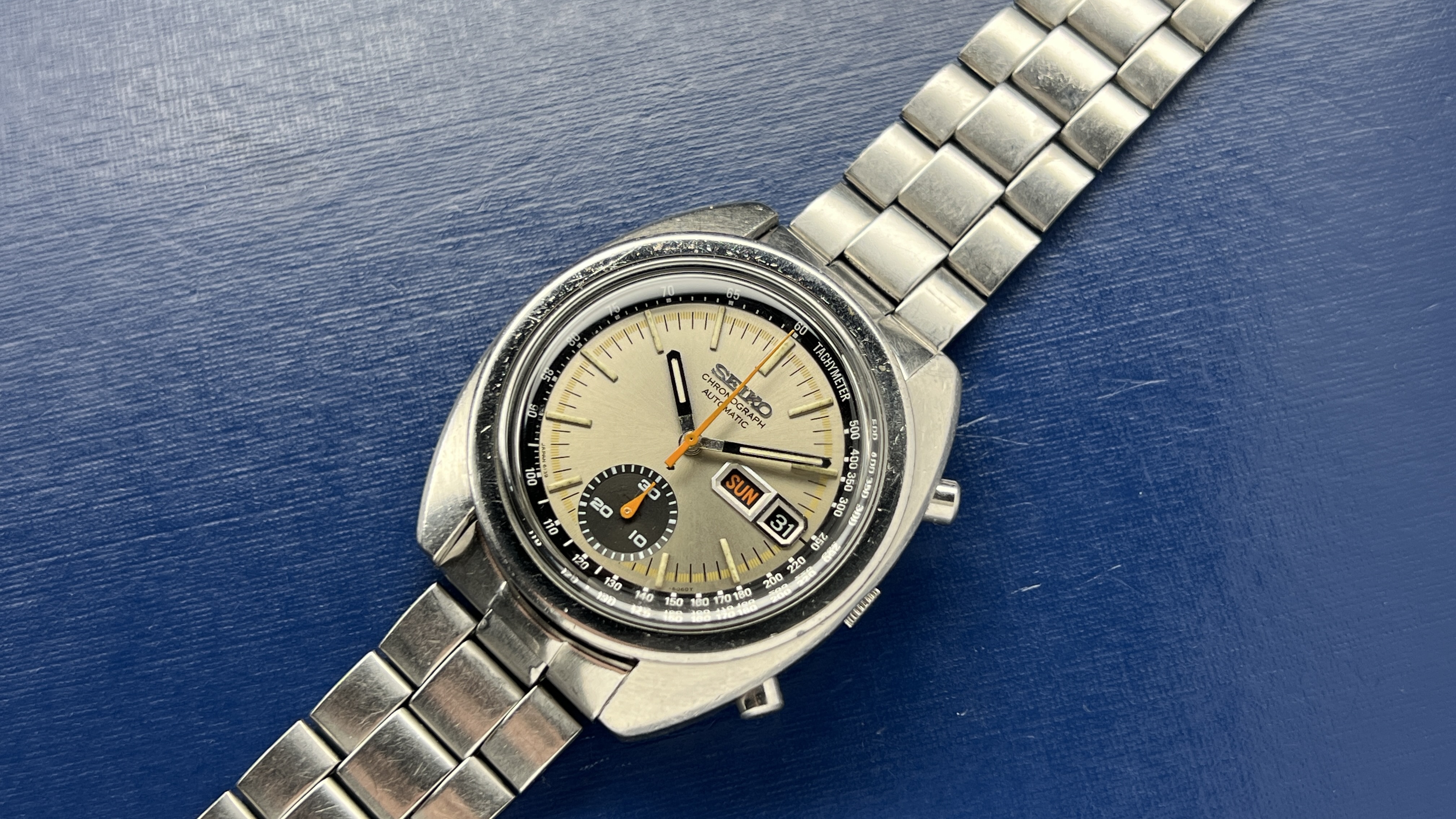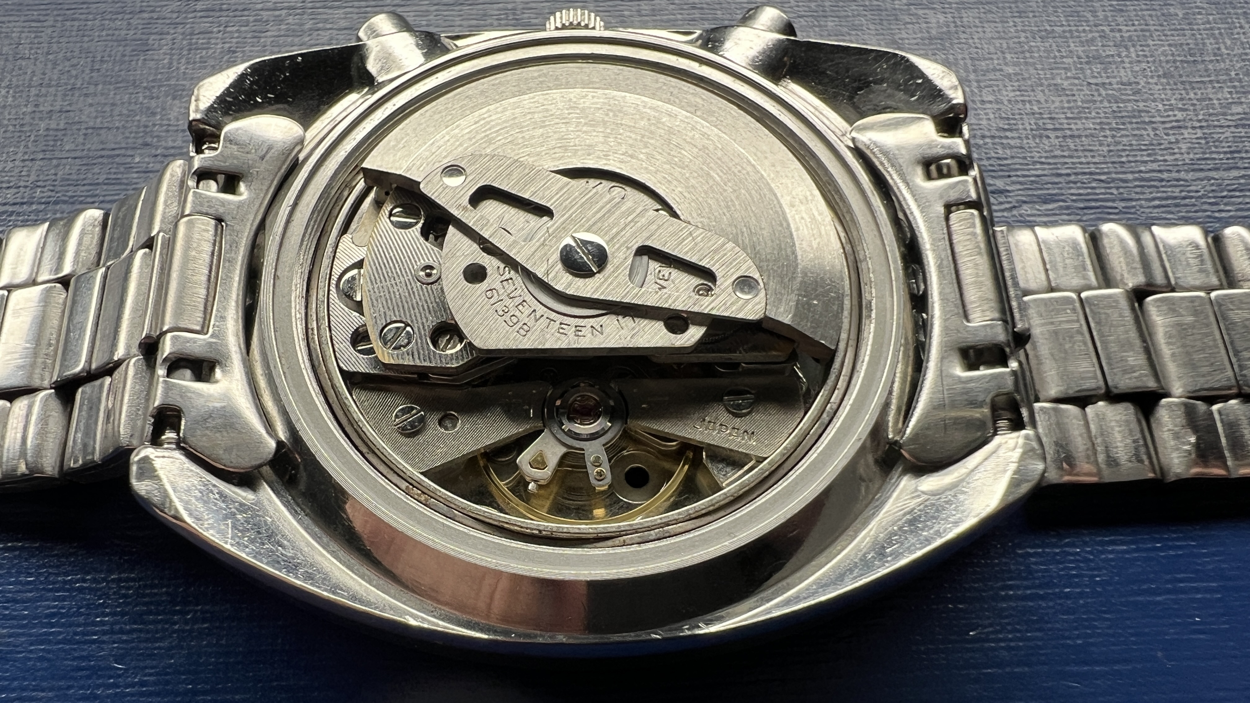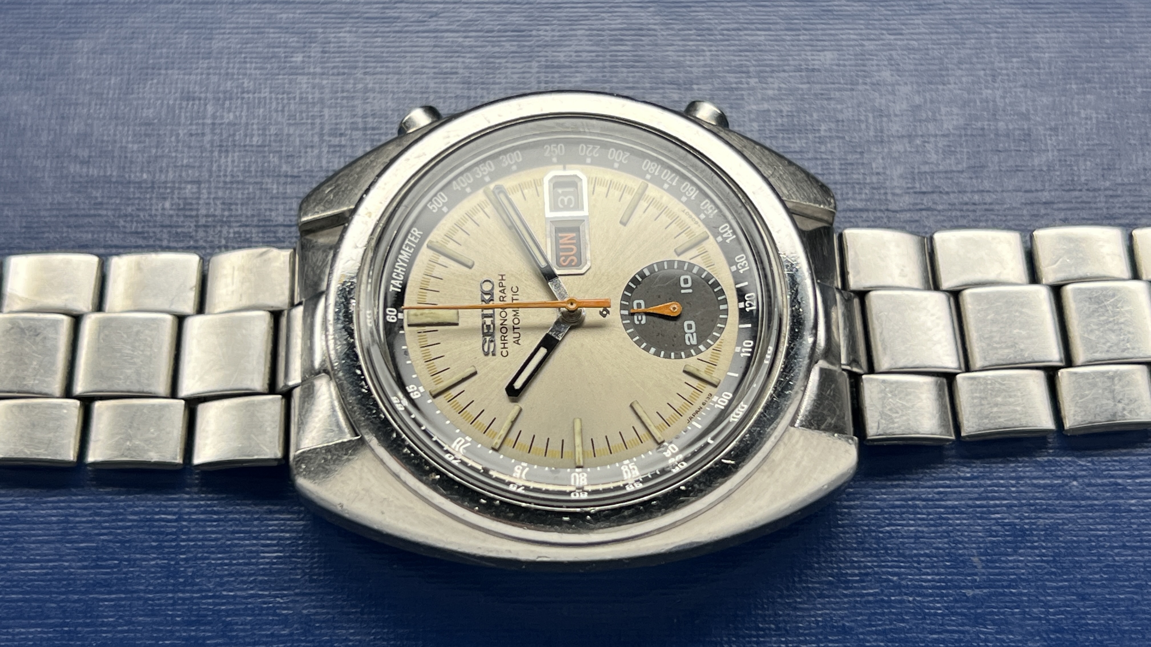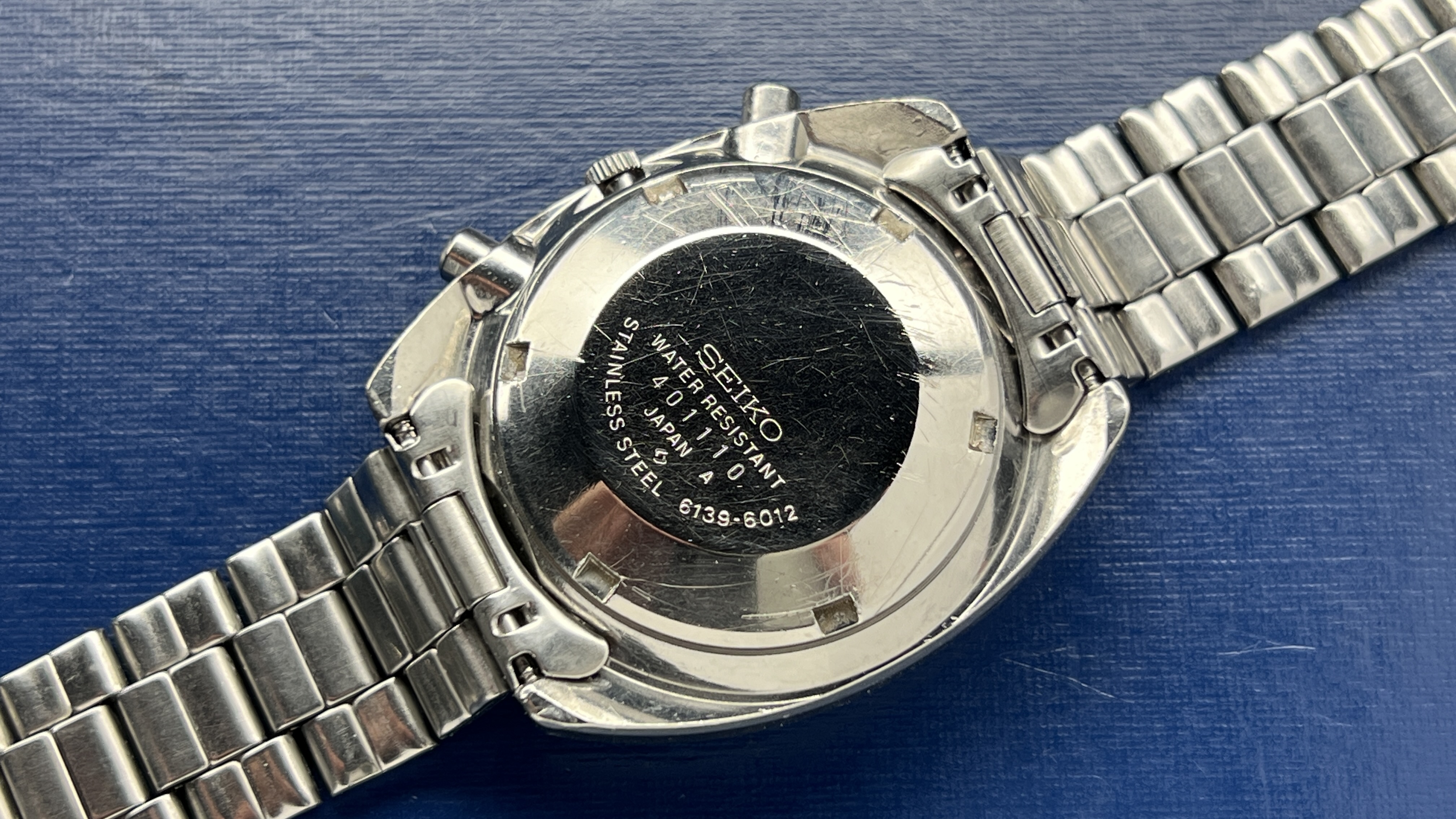 Condition The case remains unpolished and I would rate the condition as good. The dial is original and all hands are original to the watch. The dial has a factory stamp date of (4N) and the case back is (40). The chronograph hands reset exactly to their vertical positions. Bracelet is a Seiko square-link style, but I am not certain it’s original to the watch. However, it is in very good condition and the end links fit perfectly. The crystal is a new Klein Hardlex replacement. All components original to this watch (dial, hands, case, pushers and all mechanical components). Dimensions and details Diameter: 40mm Width (L-to-L): 43.5mm Height: 14mm Lug width: 19mm Movement: 6139b, 17 factory jewels + 2 additional Service The service process includes a full cleaning and evaluation of all movement components and proper lubrication and the installation of two new jewels in the arbor ports (a $140 upgrade). Lubricants are Moebius synthetic varieties appropriate for this watch movement type. The rate is +/- 2 sec/day. The case back, pushers and crown all have new, and factory correct seals. This watch comes with a 1-year limited warranty on the movement from the time of sale. Shipping is to CONUS through USPS 2-day.We also accept Zelle or Venmo for all purchases.