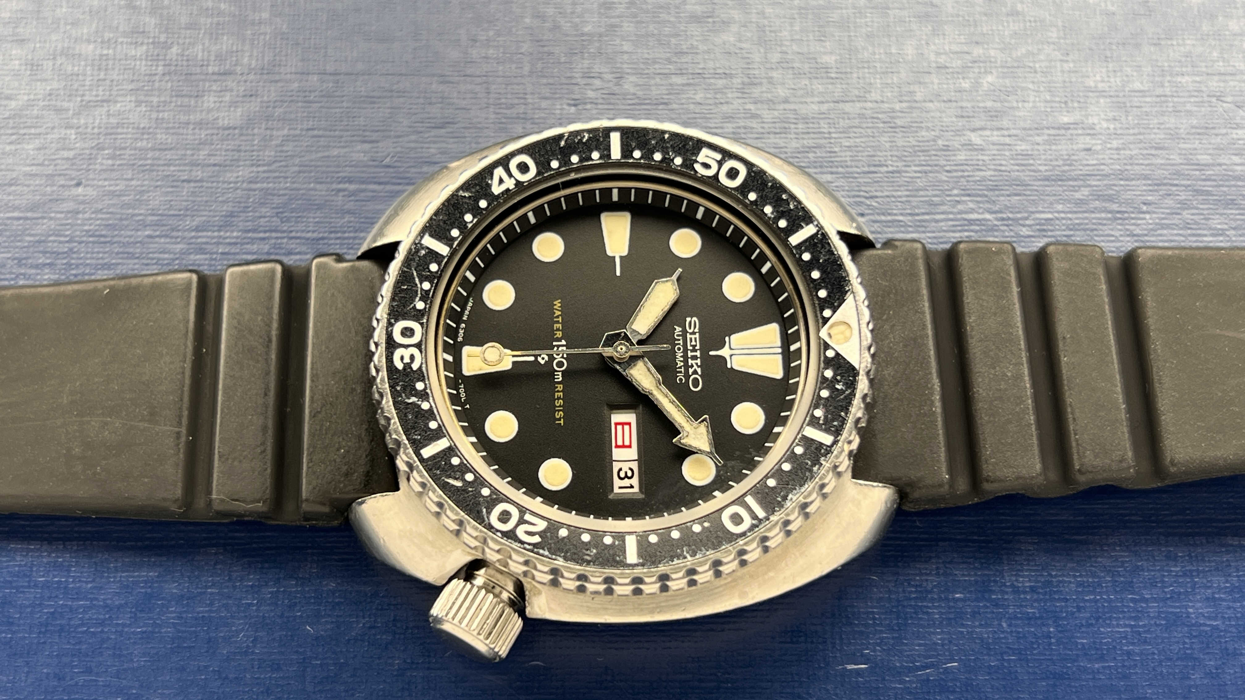 For your consideration is an April 1978 6306-7001 Third Diver. An extremely desirable Seiko diver’s watch. This is a hacking 6306 JDM diver with an English/Kanji day wheel. All components are completely original to the watch.